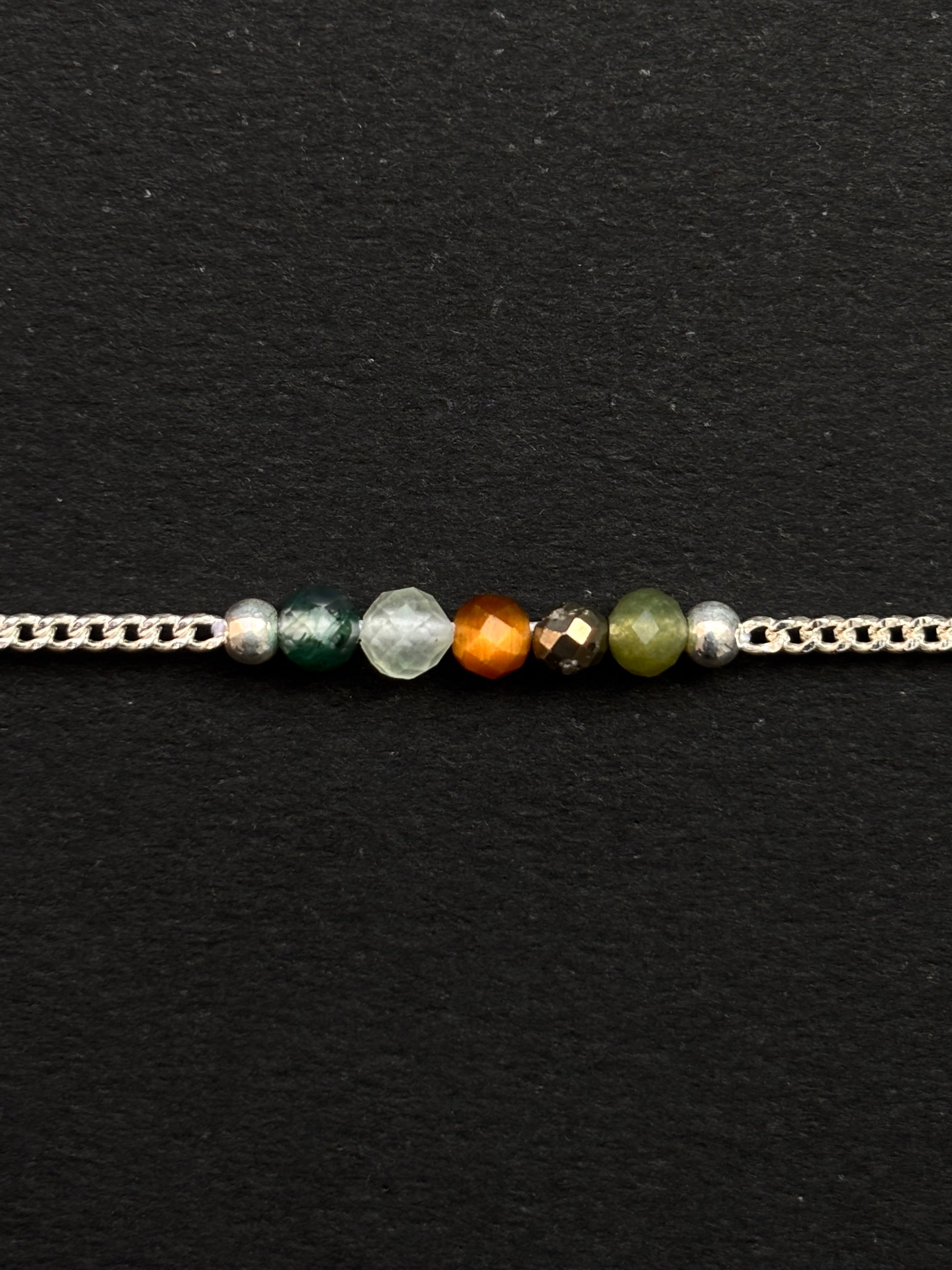 ¿Estás listo para transformar tu energía y abrirle la puerta a todo lo bueno? Esta combinación es una bomba de abundancia, confianza y bienestar. La ágata musgosa es ideal para quienes están comenzando algo nuevo o atravesando un proceso de transformación personal: trae fuerza, intuición, comunicación clara y una vibra de crecimiento constante. La aventurina verde y la turmalina verde se suman como aliadas de la sanación, la calma emocional y la prosperidad, disolviendo lo negativo y promoviendo una sensación de armonía y claridad. Y si lo que necesitas es confianza absoluta y protección energética, la pirita y el ojo de tigre te cubren con su fuerza magnética, ayudándote a mantenerte firme, creativa y llena de buena vibra. ¡Una mezcla poderosa para atraer oportunidades, mantener tu centro y brillar sin miedo!