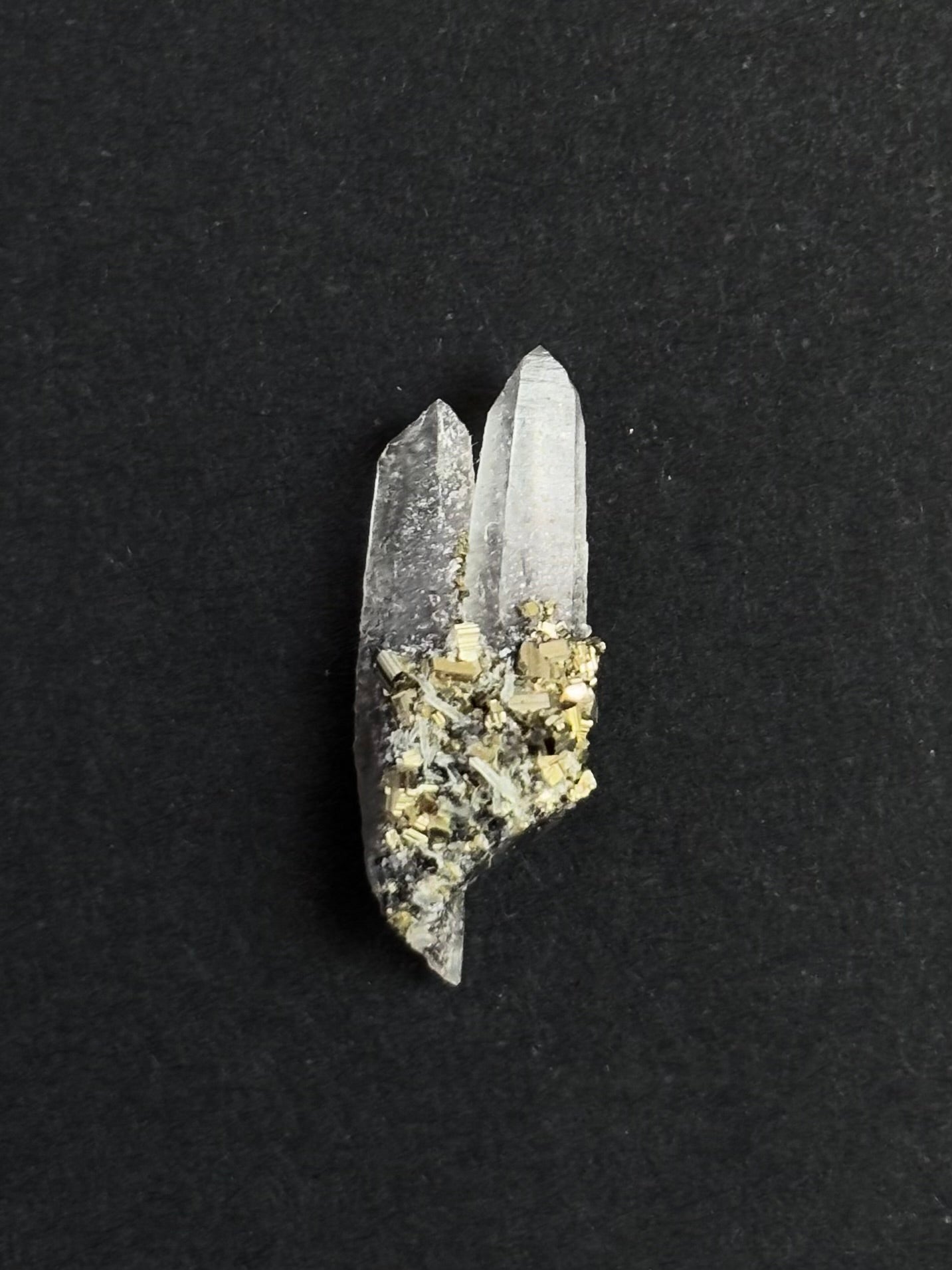 CUARZO CRISTAL MACLA GEMELOS Y PIRITA