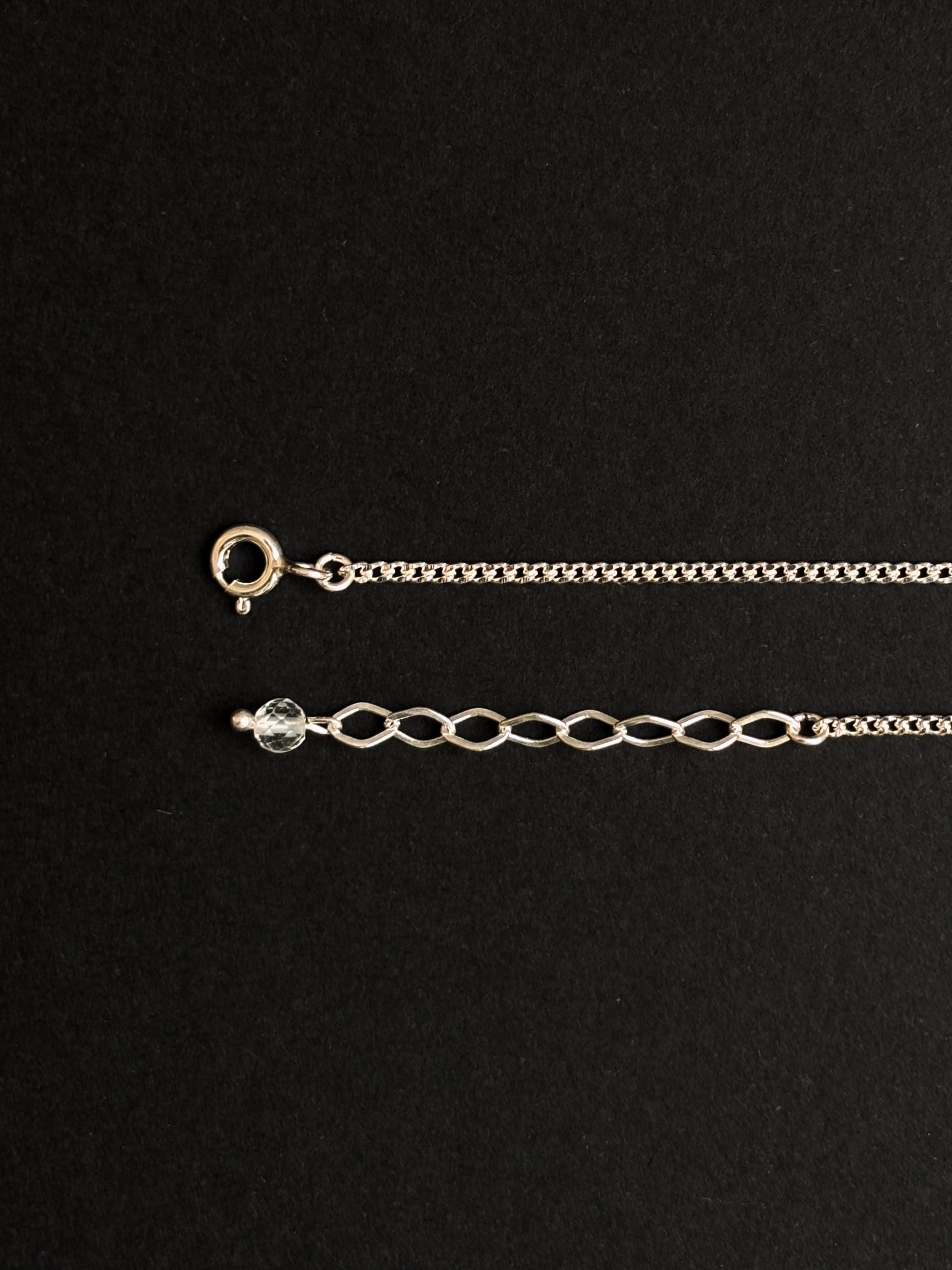 *Cadena, broche y accesorios de plata.